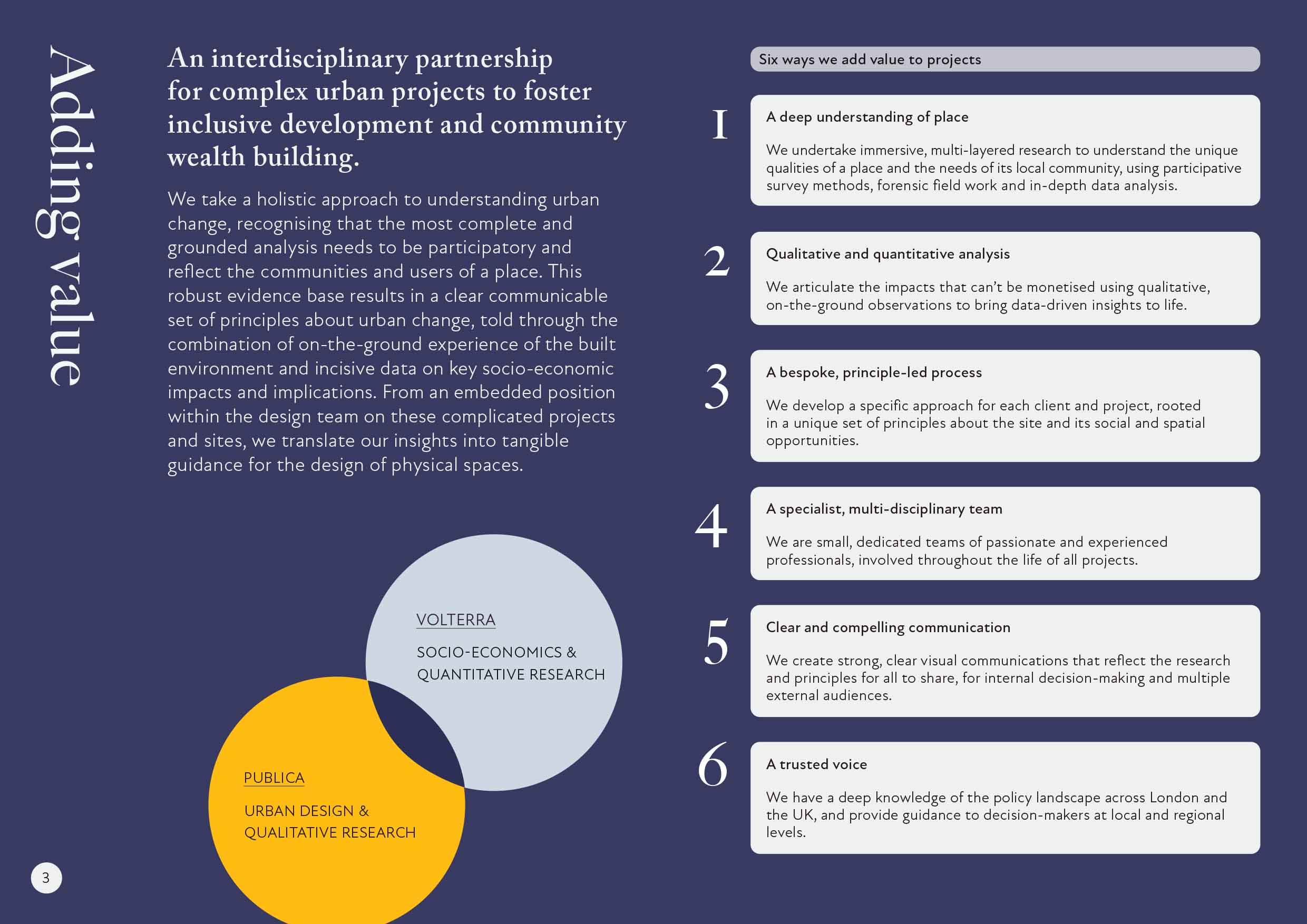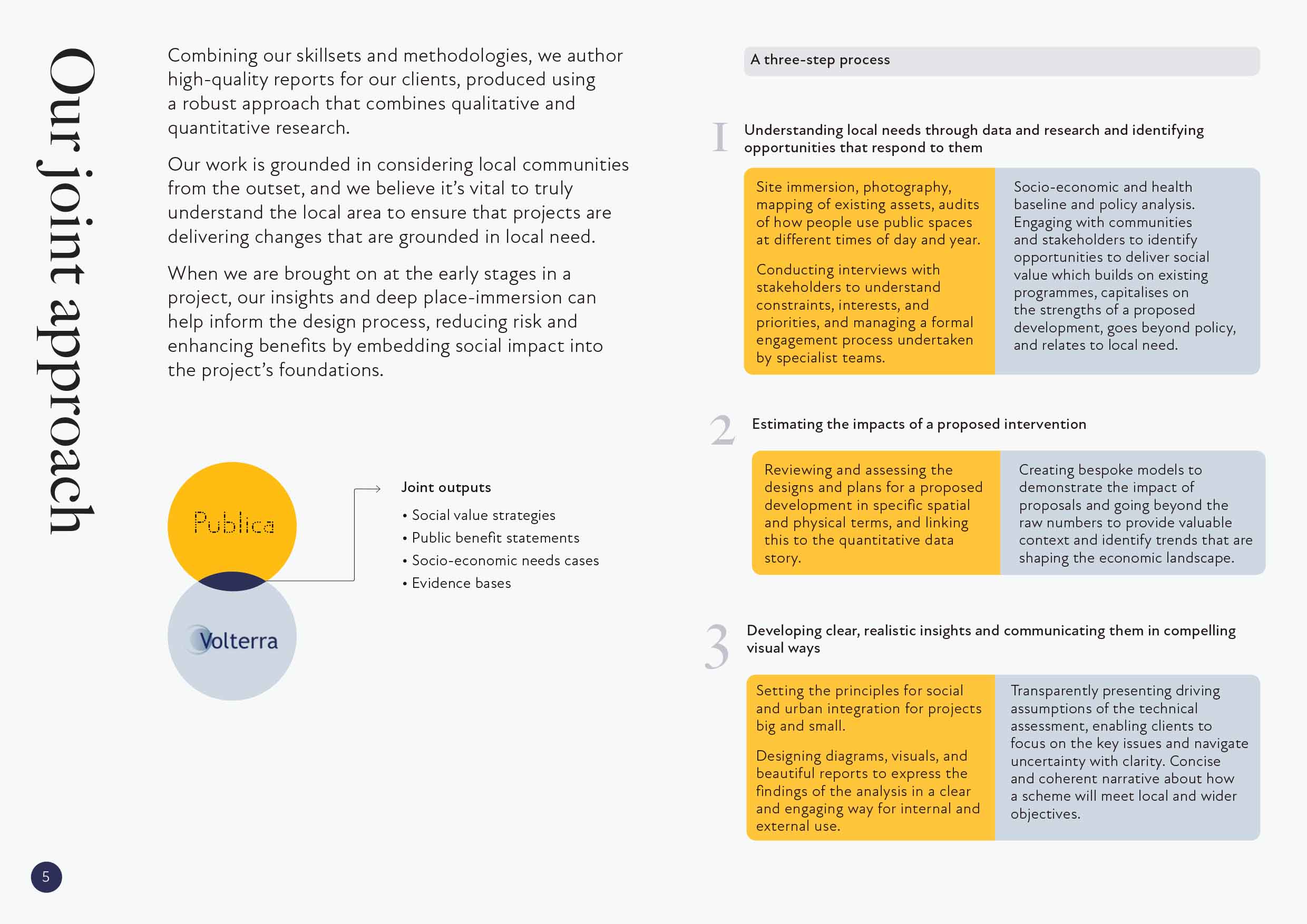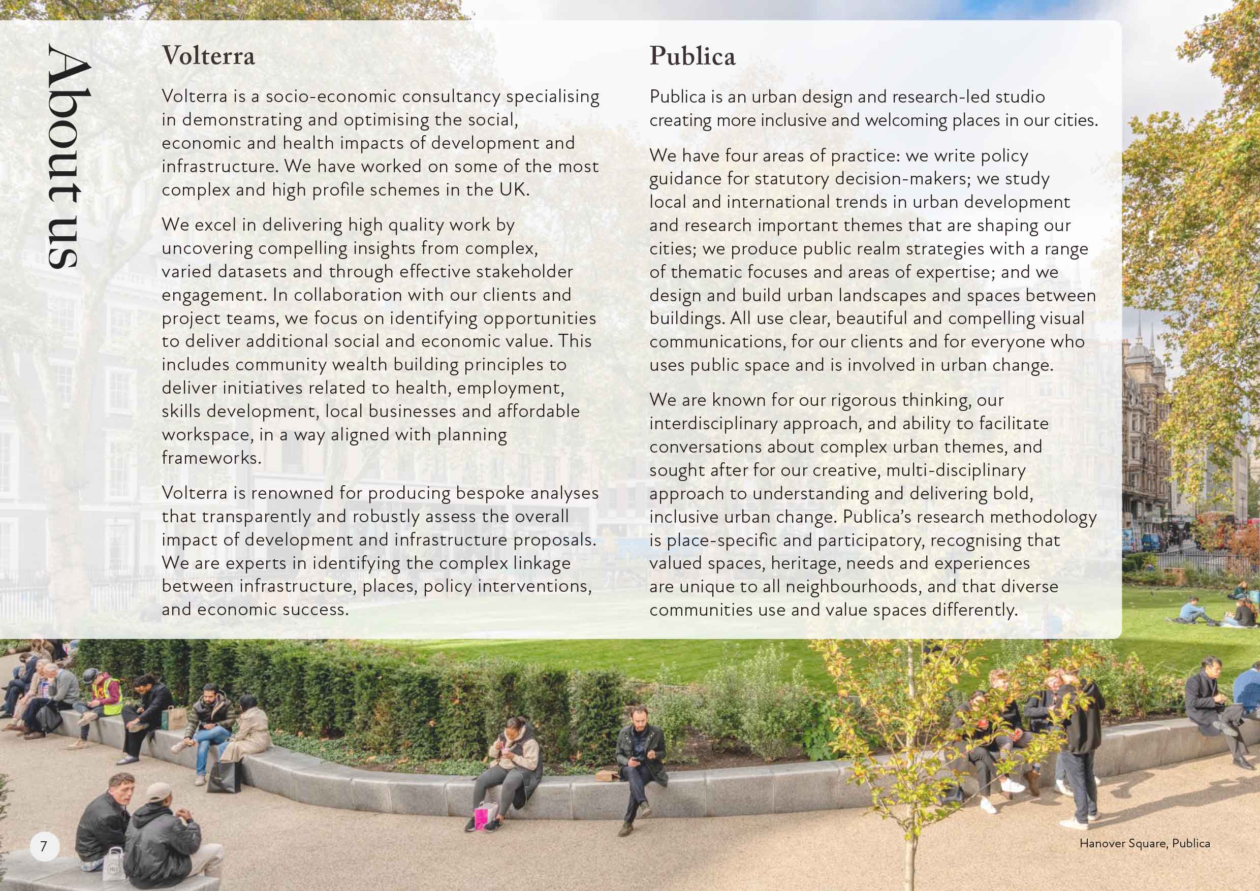 Our work recognises, measures and shares the value of people, places and the networks that connect them. This enables us to build evidence for inclusive and participatory urban change that can then be clearly communicated. Publica and Volterra believe it is vital to prioritise local communities from the outset and we support urban development that invests in and contributes to them.