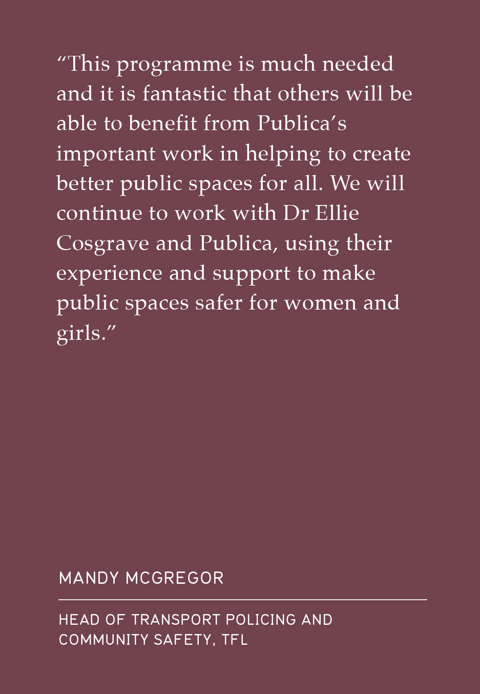 Today, Publica’s social enterprise launches a new campaign delivering practical tools to address violence against women and girls in the built environment, supported by more than 15 of London’s leading land owners, developers, and Business Improvement Districts. The way we plan and design our cities needs a radical overhaul and this industry-led campaign will provide the essential knowledge, tools, and expertise to transform our cities for all.