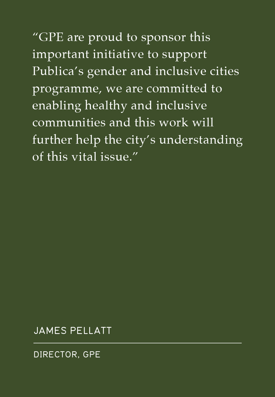 There is already consensus on what needs to change, but the expertise is not publicly accessible. It is now time to galvanise our sector, get expertise in the right hands, and deliver real projects, at scale, on the ground. When we actively address gender inequality in cities, we make cities better for all. For example, in making streets and public transport safer for women and girls we improve access to low carbon and active travel, which has a profound impact on pollution level and wellbeing through active lives.