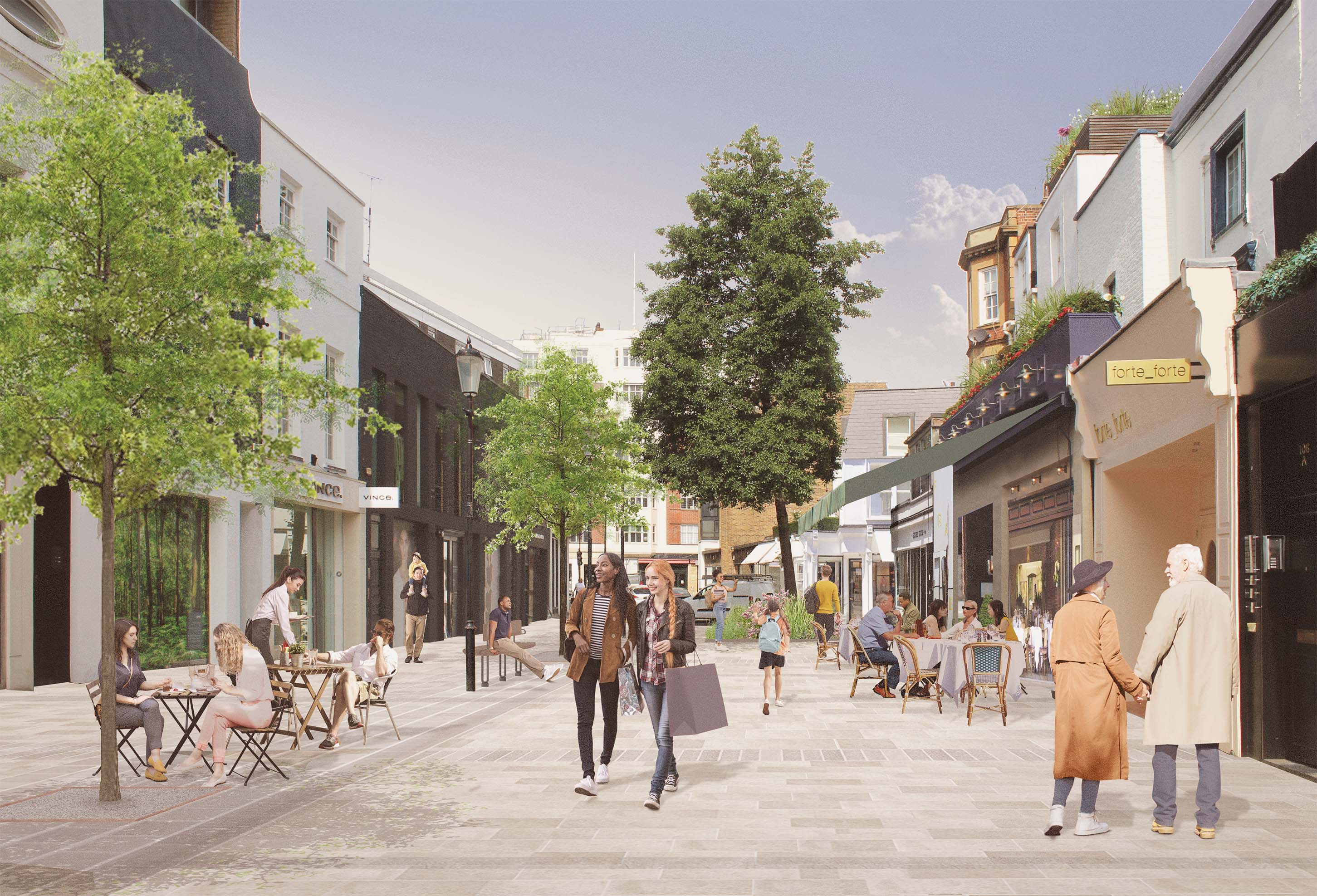 The redesign of Draycott Avenue began with a public realm strategy for the Brompton Cross Area, which sought to prioritise pedestrian activity and celebrate its independent businesses and creativity. At the centre of the vision was the transformation of Draycott Avenue.