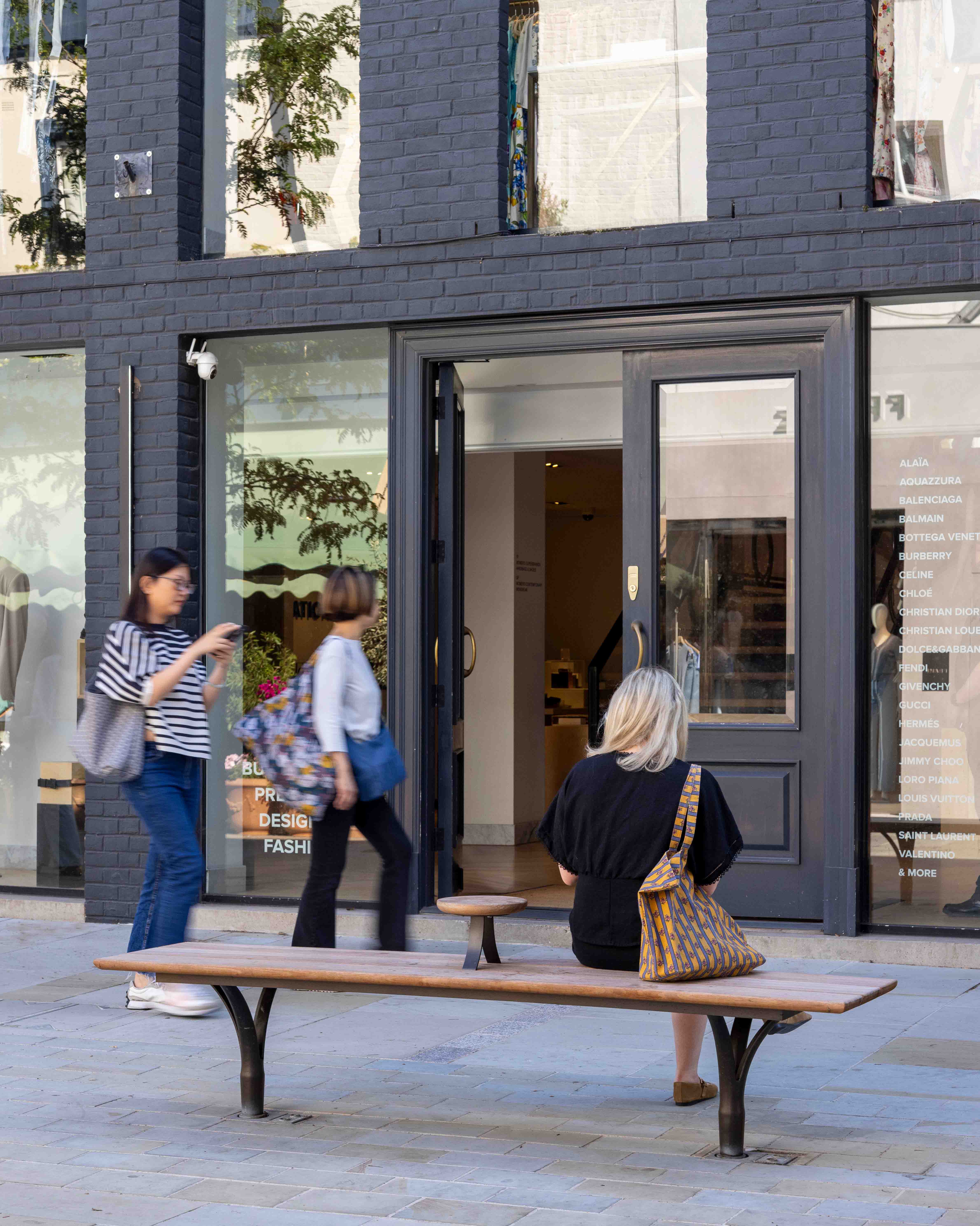 Bespoke new benches, made from iriko timber, were designed in collaboration with Furnitubes. The seating is removable, allowing the space to flexibly adapt to street events, al fresco dining and everyday public use.