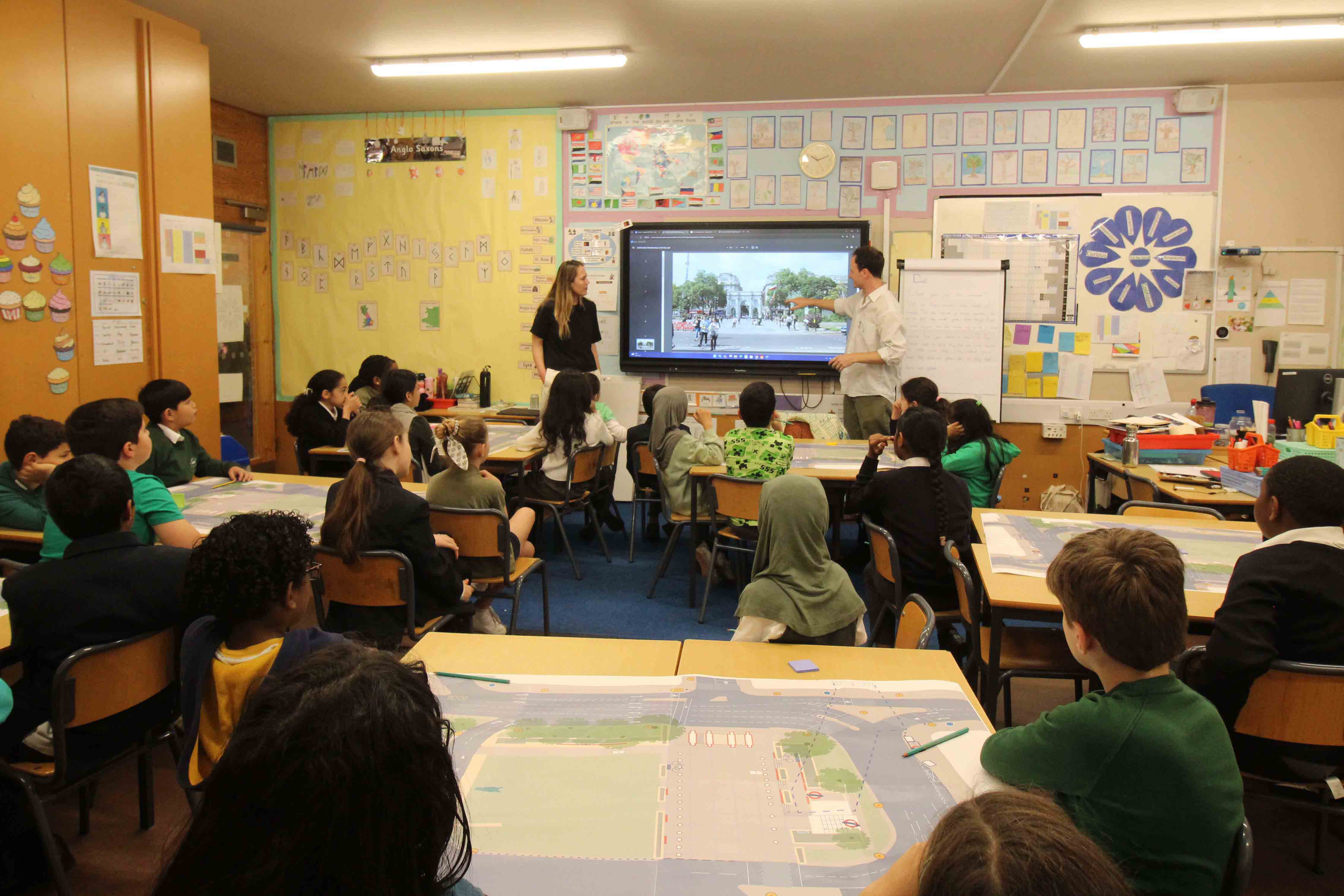 Over two months, Publica team members Gaia Crocella, Jemima Ashton-Harris, Ollie Riviere, and Director Anna Mansfield, ran three design workshops with a brilliant class of enthusiastic Year 4 students, designed to show what it means to shape the city they inhabit, fostering their sense of belonging in their area, and give confidence in the importance of their voice. They were asked to re-imagine how to make their local area greener, more sustainable and fun, through a series of collaborative discussions and 3D model-making sessions with the goal to design a city where they would like to live in the future.