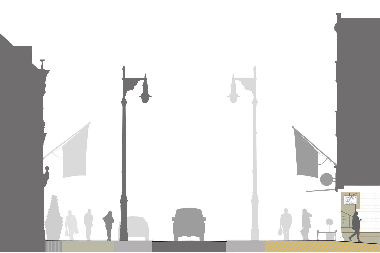 Publica’s concept design for Bond Street was developed following our detailed audit and analysis of both the street and the wider neighbourhood. Existing street uses, routes, character, connections, material, architectural and spatial conditions and display windows, lighting and public art were carefully considered while anticipating the impact of new patterns of movement across the district.