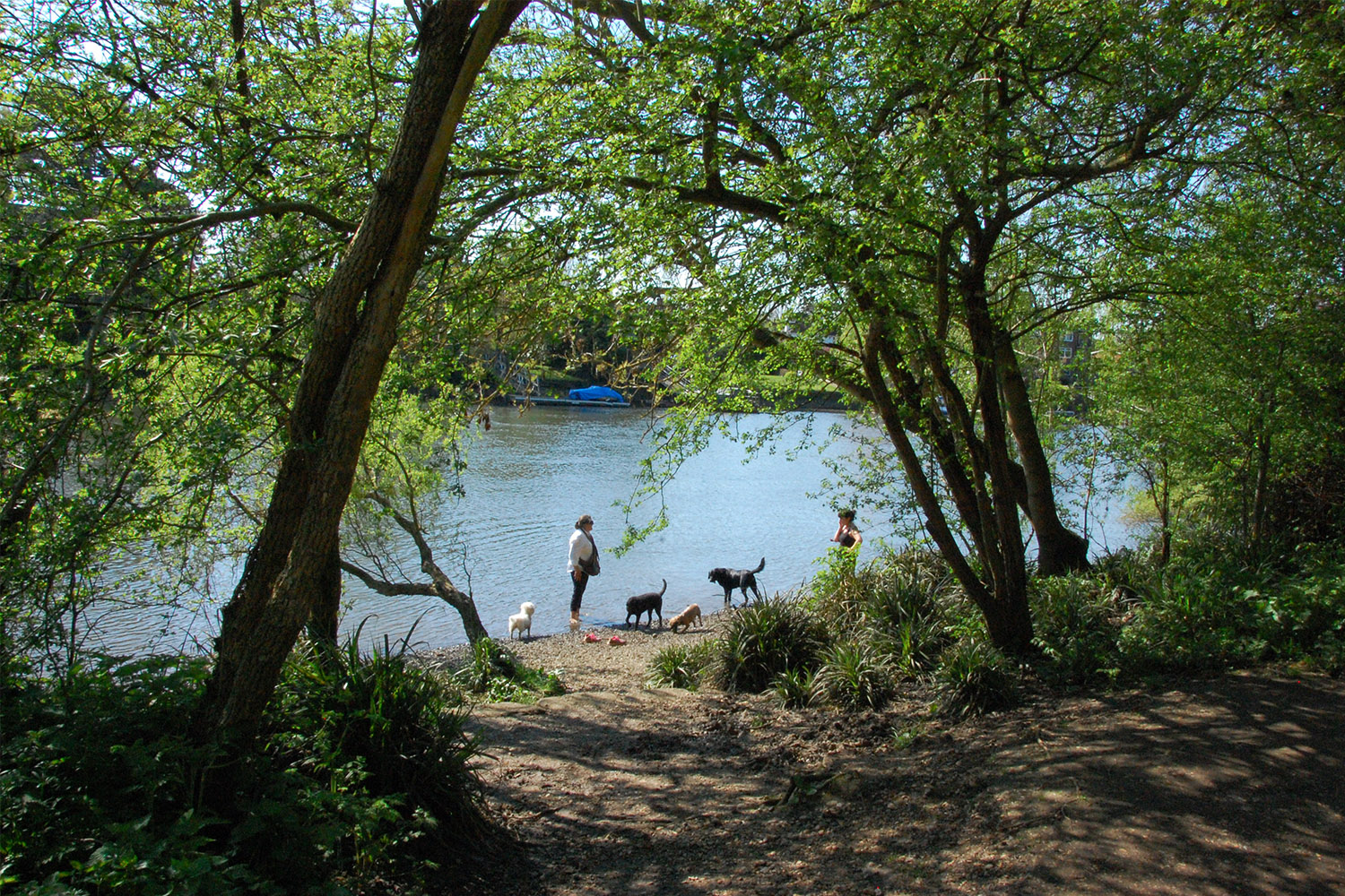 Riverbank, Ham: A conversation on the Thames foreshore in Ham. Compared to other parts of the Thames, the river is quieter and more accessible in west London.
