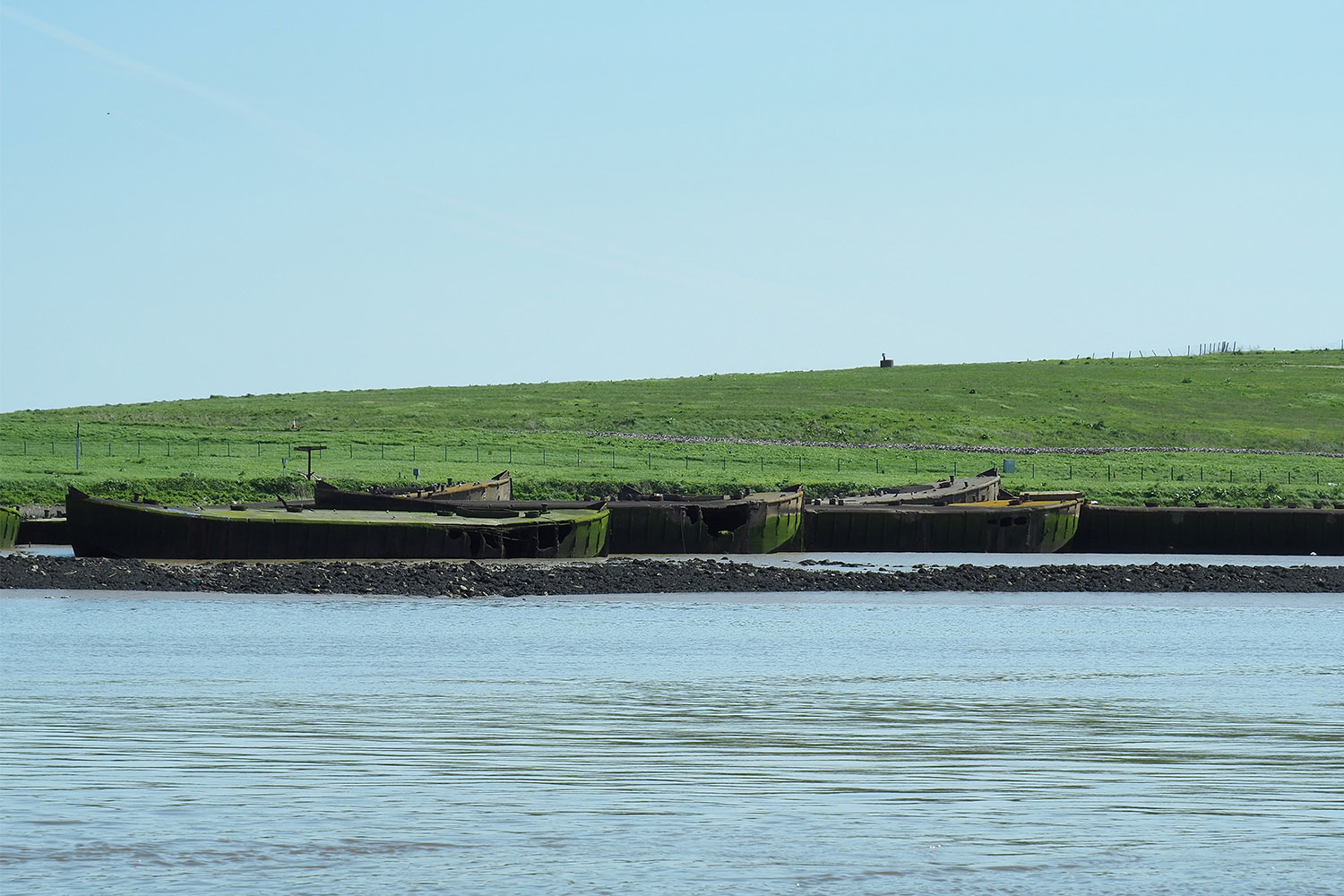 Concrete barges, Rainham: Sixteen concrete vessels used in the D-Day landings for WWII lie on the northern foreshore of the Thames, next to Rainham Marshes. These ships helped to transport men and equipment to shore during the D-Day invasion. According to the Royal Society for the Protection of Birds, they now serve as a bird roosting site and support the annual wintering of rock and water pipits.
