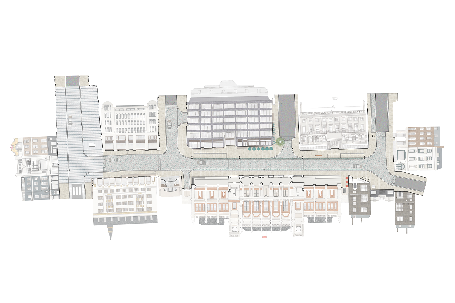 The project was first commissioned in 2016 by The Pollen Estate, NBIM, O&H and the Royal Academy of Arts, in consultation with the Savile Row Strategic Group, Native Land, WCC and NWEC. Since, Publica has produced concept designs and spatial coordination for multiple streets and has provided oversight throughout construction and finalisation.