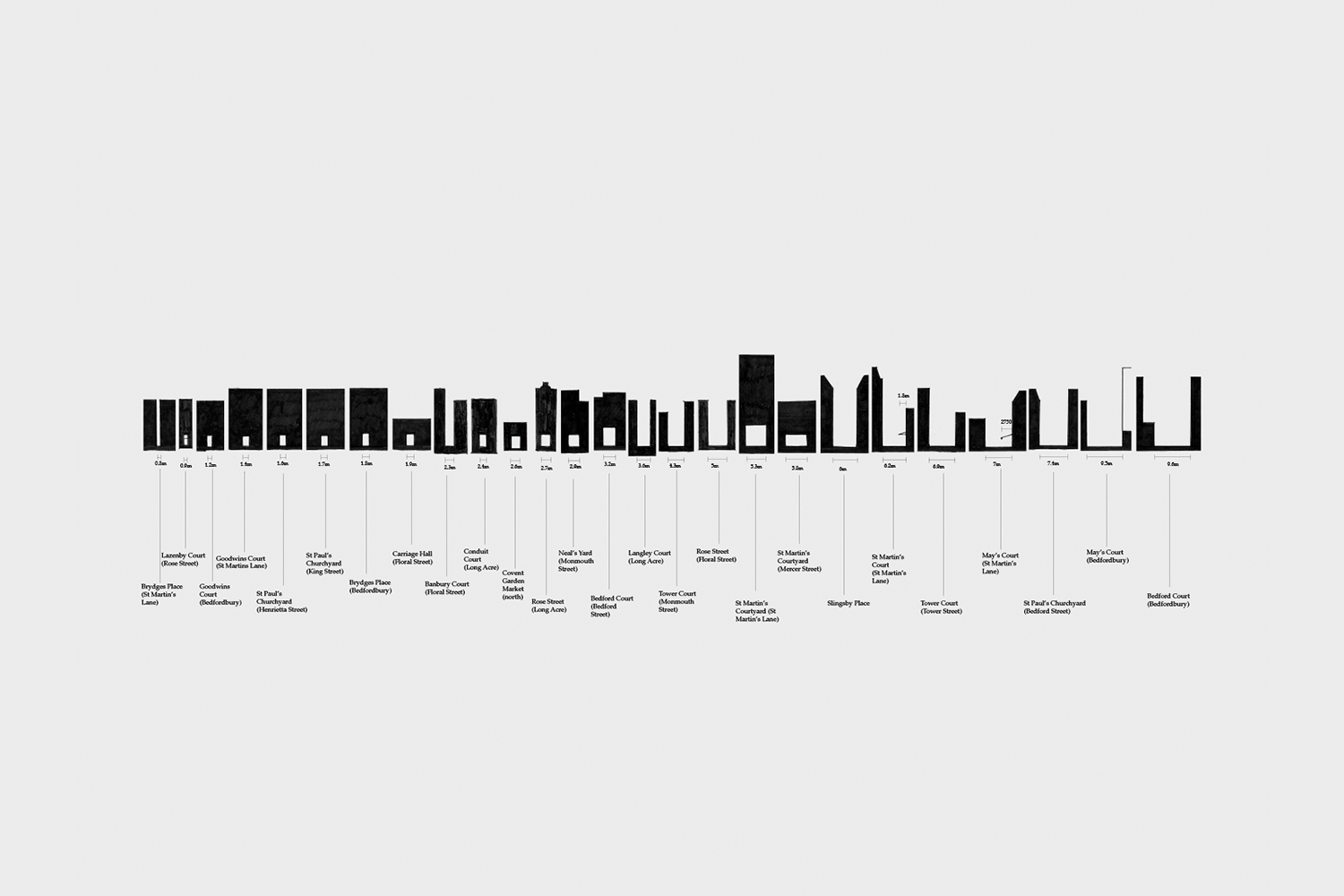 The public realm strategy developed by Publica provided guidance for the courtyard’s integration with the area’s wider network of public spaces, and was informed by an in-depth area survey of Covent Garden. Research and fieldwork included detailed studies into the scale, character and use of the area’s network of pedestrian routes, historic passages and courtyards.