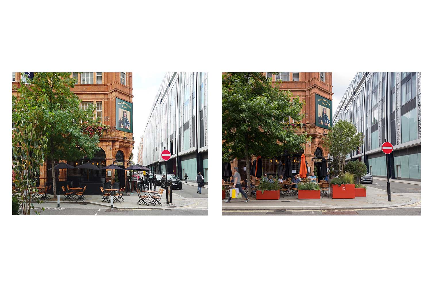Publica was appointed by Grosvenor to implement a temporary scheme for North Audley Street to support hospitality in the short term and build upon Grosvenor's vision for North Audley Street as a destination for outdoor dining in the district.